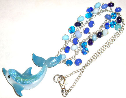 I made this for my friend. It’s supposed to be a necklace/rear view mirror hanging thing. I made it so it can hang from anything. My friend likes dolphins. Tom from Sanctuary Glass made the dolphin.