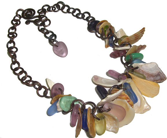 I made this necklace to match the bracelet I got from Tracy Bell. She makes the most awesome jewelry. Some of her jewelry features found objects like seashells and buttons and she combines silver, copper, brass and glass in her pieces. Check her work out at http://www.etsy.com/shop/tracybell.