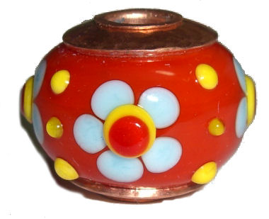 I haven’t been that productive making beads this weekend. I’m probably the only person that can make a crappy looking frit bead. I bought some reduction frits and all the beads I made with it turned out hideous. Nothing like others that I’ve seen. So, here’s my meager beads for this weekend. I wanted the orange bead to be red but I picked up the wrong rod. Still, I think it turned out pretty good.