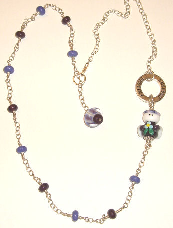 I know, the picture isn’t very good. I really have to practice my photography skills. Still, I wanted to show this angel necklace that I just finished. It’s an asymmetrical necklace.