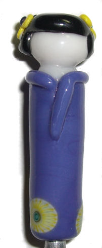 This is the first kokeshi doll bead that I’ve made all year. I actually made another one but I made it on a bent mandrel and couldn’t get it off. I don’t normally make long beads so being a little bent isn’t usually a problem. I’ll have to remember to check my mandrel before making another one. They have to be straight for long beads.