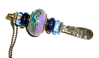 This is one of the same cored and capped beads that I showed in a previous post. I made it up into a bead stick pendant.