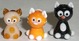 There’s a cat bead exchange happening on the glass bead makers forum that I thought I might join. I made a few kitties last night. These are some small kitties. All are less than an inch tall.