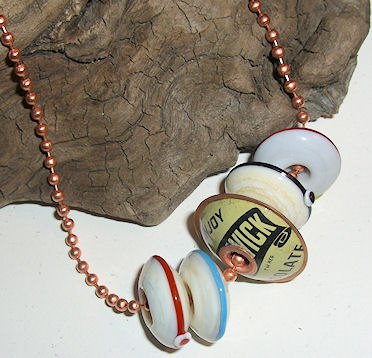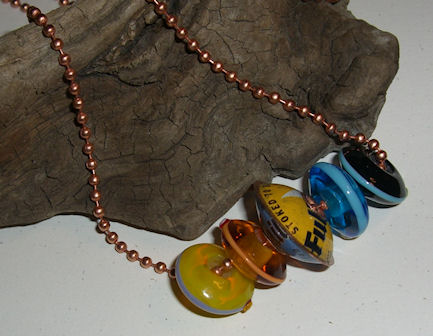 I’m just putting them onto ball chain along with some glass disk beads. I didn’t take pictures of all the necklaces since they are almost the same. Here’s a few of them.