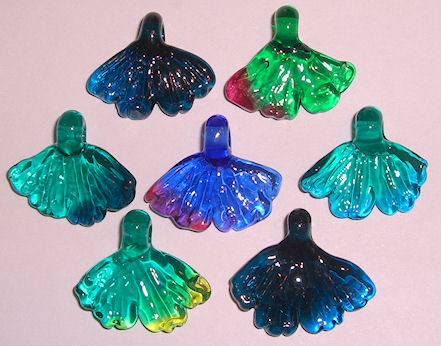 In glass, of course. My friend made some gingko leaf pendants out of polymer clay and wire. I thought they were cute and decided to try them out of glass.