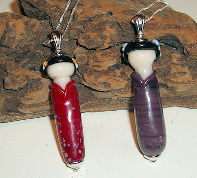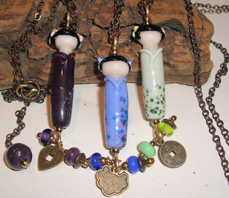 Since I sold all the kokeshi doll pendants at my first craft show, I had to make more. These are the ones I used brass chains and findings.