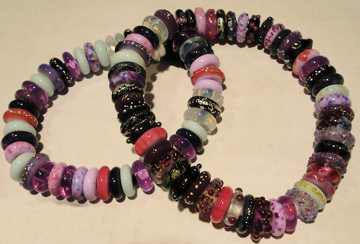 I started out making purple/pink disc beads for a necklace. Here’s a picture of them: