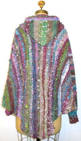 I finally finished my shawler. It’s a pattern by Shelle Hendrix. It’s kind of a shawl, kind of a sweater. This one is crochet, but I knitted the cuffs.