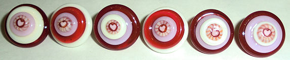 This is the set of buttons I made. I used pink heart murrini in the centers.