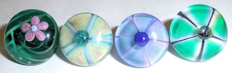 Amber posted a tutorial on Lampwork Etc. on how to make the two beads with silver foil in them. She called them Fire Opals which hers looked more like a fire. Mine, not so much but I did get some color and wispy things and they do look cool with the silver foil in them. I think this set will make a nice badge holder.