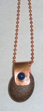 Front. It’s got a lapis cab set in a bezel under a piece of copper.