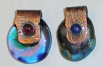 First up is a couple of glass pendants that I made a copper bail to hang them from.