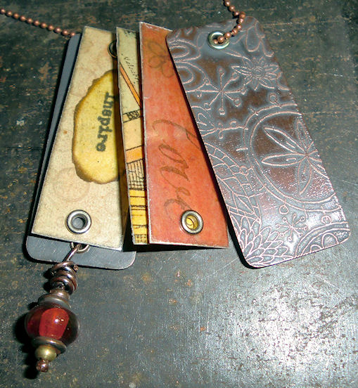 Yep, this is the last one. I’m moving on to other things. This one uses some cute pictures and backgrounds with an “inpire” word on one of the tags. I added a little bead dangle at the bottom.