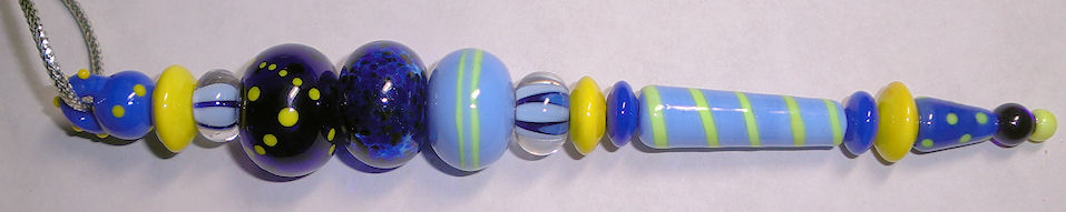 It didn’t take me long before I wanted to make another ornament. This one turned out really bright and cheery. I did have more yellow in it and it was just too much so I made more blue beads and used the yellow for accents.