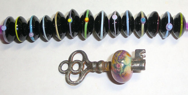 I did make another bead on a skeleton key but it was too hideous to show. I’ll crack the bead off and redo it. I like the way this one turned out. It’s opal yellow with enamels on top.