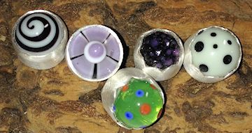 Glass cabochon charms. They have a loop on the other end so they dangle.