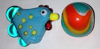 I spent a lot of time trying to figure out how to make the swirl bead. Finally got something that was about right had it not been for so many bubbles I got when I encased the bead in clear. It does look like a marble. Will try more of these in the future. Hopefully with less bubbles.