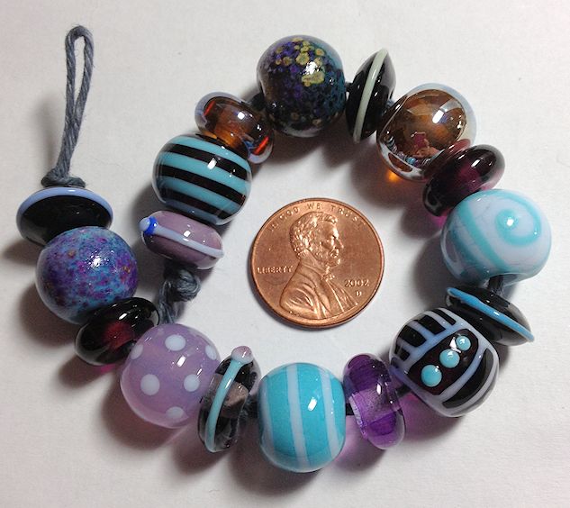 Random rounds in turquoise and purples. One round silver glass bead which you can see my reflection in so don’t look too closely. Really fun set!!