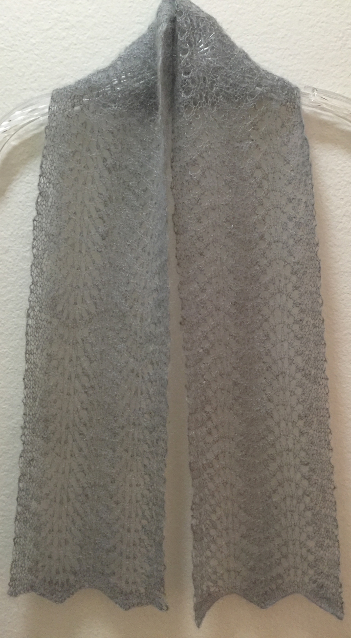 An oldie but goodie pattern – Fan and Feather. Used Rowan Kidsilk Haze yarn. It’s so light and airy and soft.