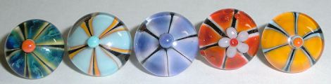 More floral implosions. I’m still working on the petals and the left one doesn’t show up that well. It’s the frit I used on the back of it. I think I’m getting better with the petals. Still need practice but I’m getting there.