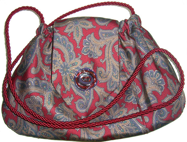 My mom made these purses out of neckties. They are lined and have a zippered pocket inside. They are a nice size too. Not tiny, like I thought they would be. Of course, I couldn’t resist making buttons for them. I think I should have make the buttons in opaque colors so they would show up more. Oh well….