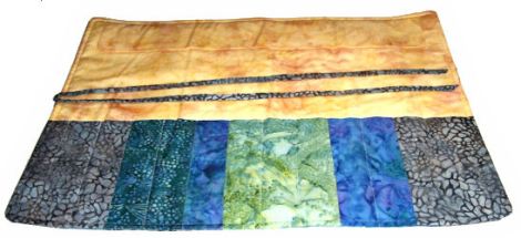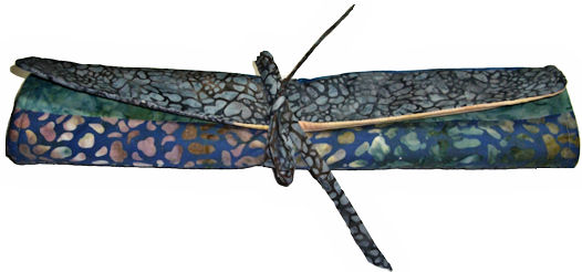 A gal on Lampwork Etc. posted instructions to make a glass rod holder case to use when traveling with glass rods. Thanks Sue!! I couldn’t pass up the chance to get my mom to make a few. Here’s the first one she made out of batik fabric.