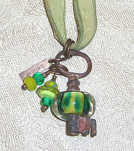 Jewelry 2010 » Skeleton Key with Beads – Frit Green