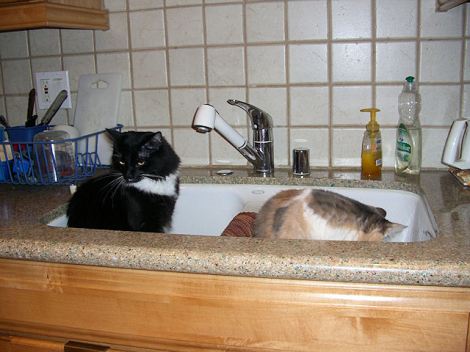 In my attempt to get another good shot of both kitties together, when I noticed Igor sitting in the kitchen sink and Marley walking around the counter, I pushed her into the sink but she wouldn’t pose for the picture.