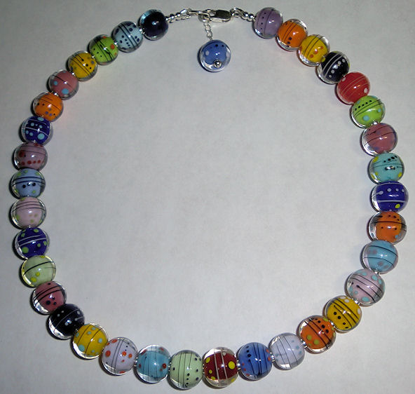 88 beads to be exact. All the same except in different colors. Encasing a bunch of different colors is a bit challenging as each color acts differently. Making only a few beads out of each color doesn’t give me a chance to get used to the glass before I move on to the next color. These are for a necklace my friend is going to make. No, she isn’t going to use them all. That would make a long, heavy necklace. I wanted to give her enough to choose from.
