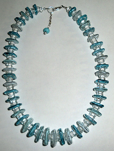 I either don’t make that many blue things or I sell them all. I seem to always end up with hardly any blue things after a show. I really like the Wedgewood blue color in this bracelet