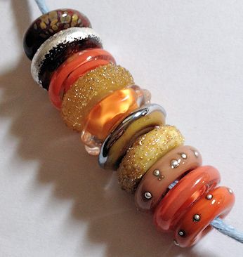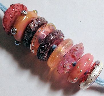 I made the pink discs and put together my leftover orphans to sell. I always make a few extra beads when I make sets and some are experiments to check colors before making a whole set.