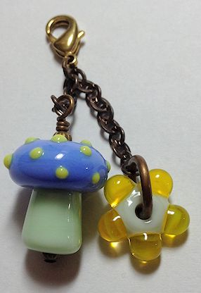 I quickly put together these clip on charms. I think the clip gives them more versatility. And they are quick to make. Going to work on more beads like this tonight.