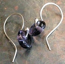 These are hard to see. They are drilled river rocks. I tried to match them up as well as I could. And by this time, I got tired of making the same earring so I did the wires all different on these.