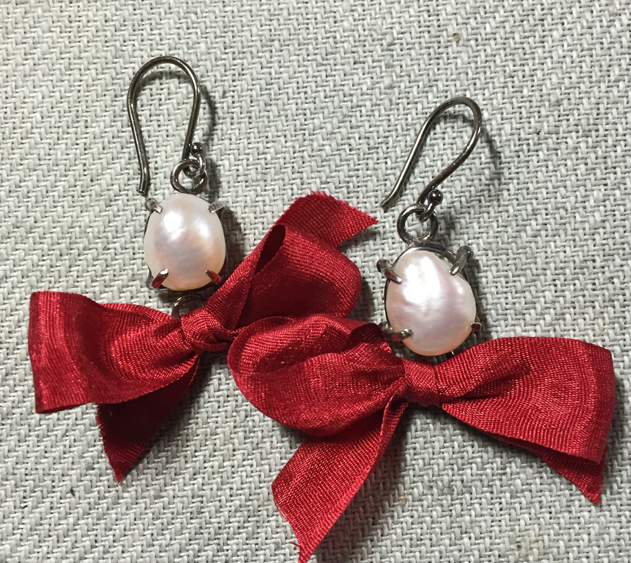 More round pearl – it’s hard to tell those are pearls and another set that I made round earrings and threaded some beads onto it. Easy peasy.