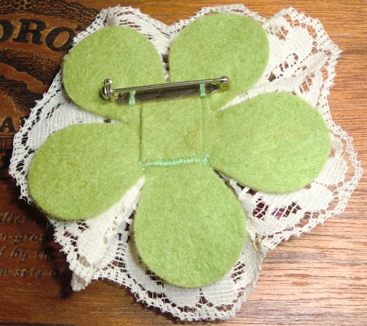 This is the back. I used a piece of fabric on the back as I had threads all over the place, it was really ugly. Then I sewed the pin back on.