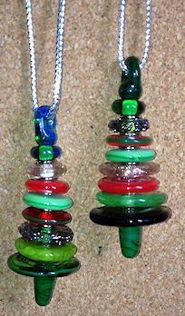 The one on the left that looks crooked really isn’t. I used some red and goldstone, along with different colors of green and silver glass frit. These are “happy” trees.