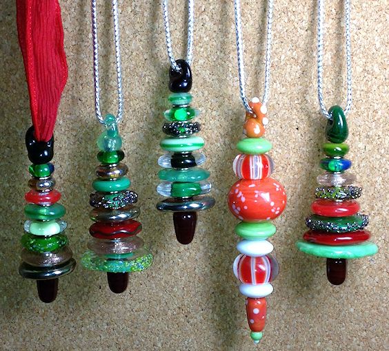I decided to try something different with the dangle ornaments and make a bunch of different sized discs to make up a tree form. Here’s my first attempts.