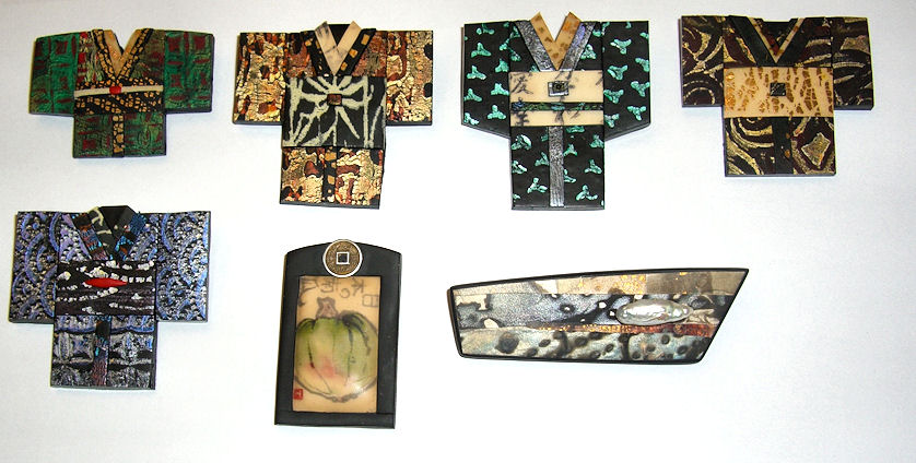 Hope everyone had a nice holiday. My sister visited and made some polymer clay pins. She was on a roll making the kimono pins. These are some of them.