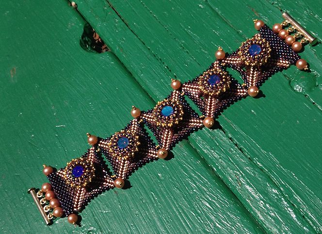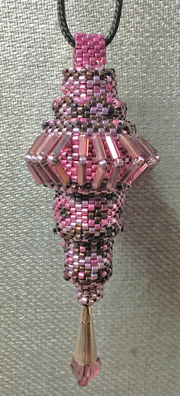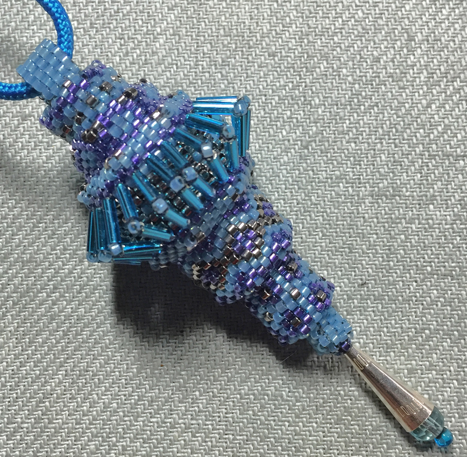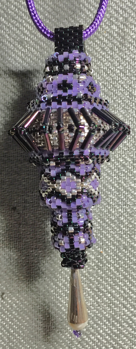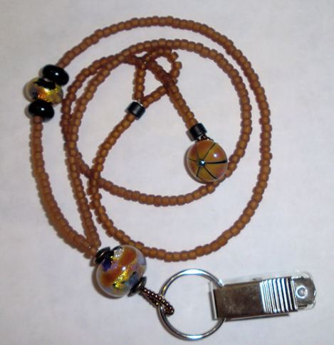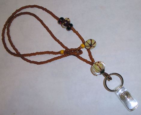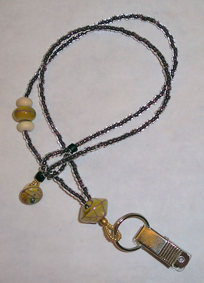 What’s weird about this one is I bought brown seed beads but they look purple with a tinge of brown cast to them. They worked out for this badge holder but I was a bit disappointed when I got them. I really like opal yellow glass with purple stringer.