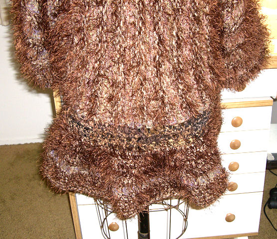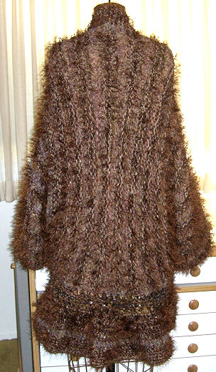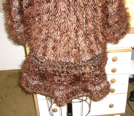 Yeah, I finished this sweater. It’s made out of recycled silk sari fabric that I got from Darn Good Yarn. Nicole, the president of the company designed the pattern.